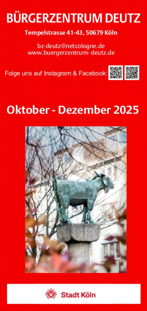 Zur Teilnahme an der Veranstaltung ist eine vorherige Anmeldung per eMail an buergerzentrum-deutz@spezialgast.de erforderlich